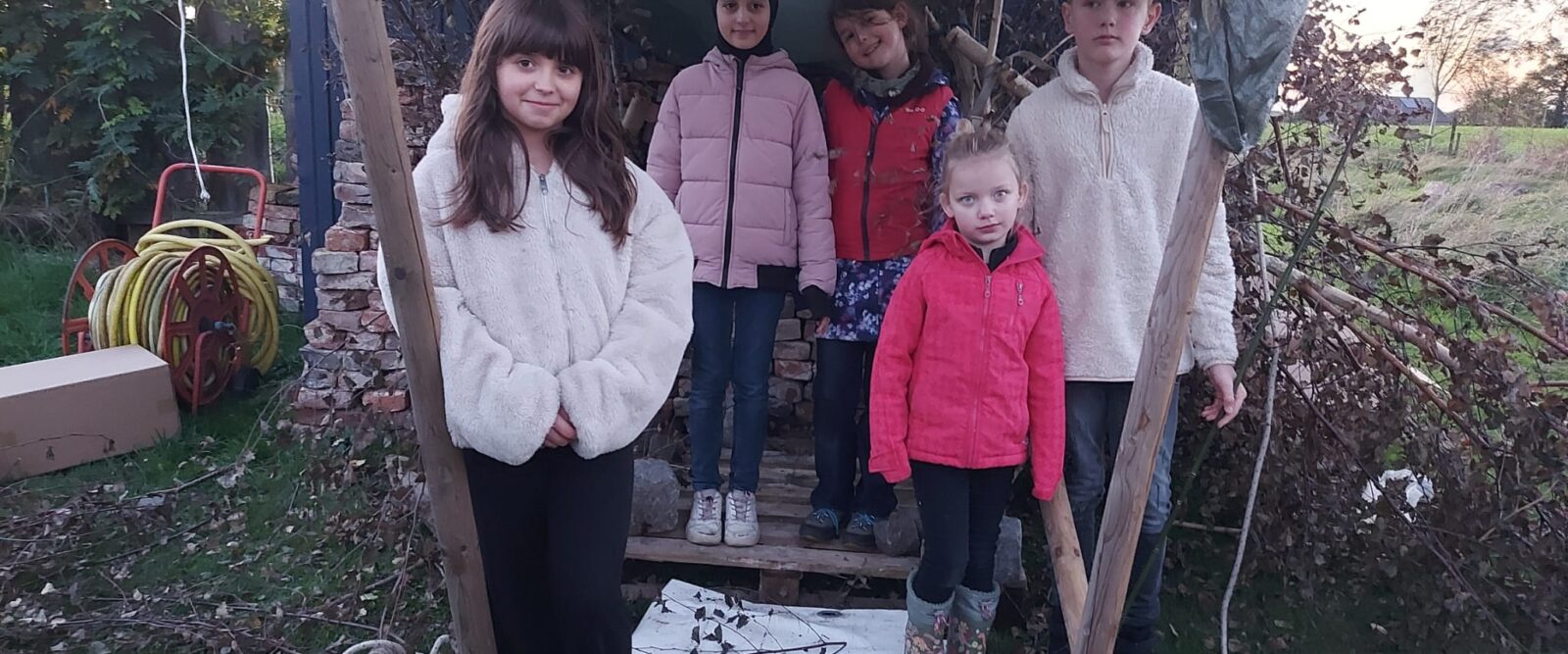 Abenteuer und Natur pur; eine Bude wurde gebaut, es gab die Möglichkeit eine Runde mit dem Trecker zu fahren und auf dem weitläufigen Gelände mit Schaukeln und Trampolin herumzutoben.